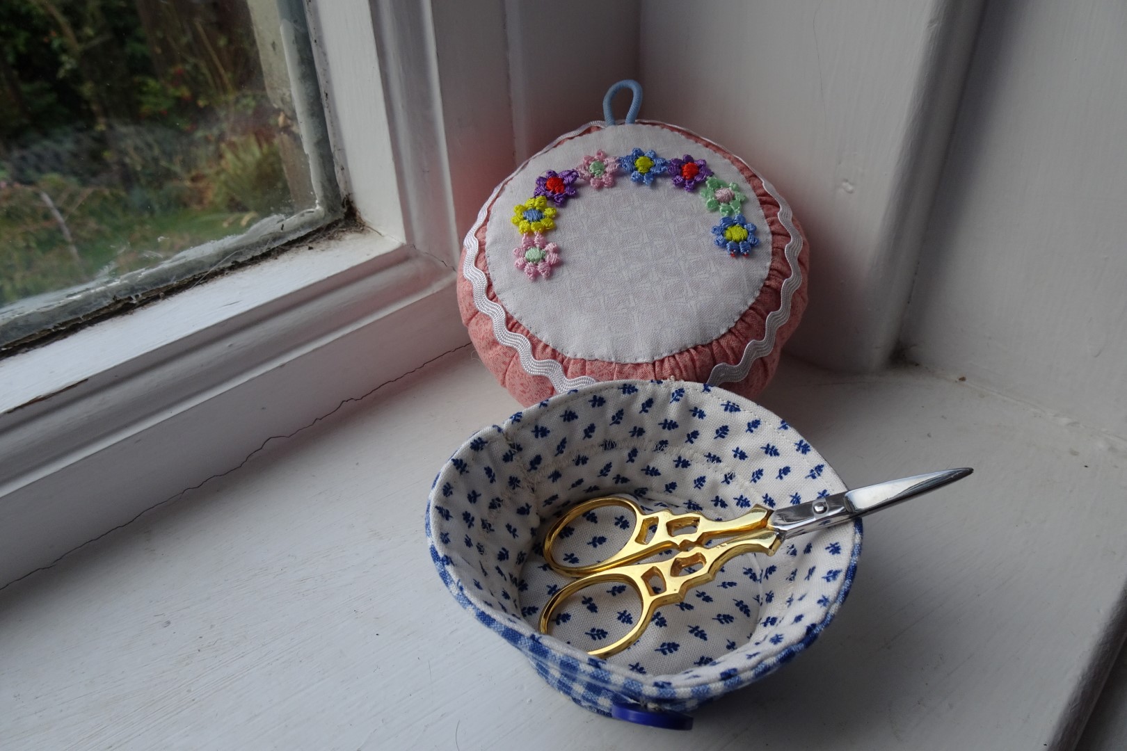 I'm getting on alright with Block 5 of the Australian BOM. All three of these will get the 3-D treatment and be appliqued to the background fabric. I'm still working on the embroidery for the pink flowery pincushion.