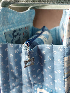 I actually spent about three days in my sewing room this week, despite the cold floor. It felt good to do some sewing. I mentioned last week that I had started on a small Japanese bag using the American Country panel that I bought in Tokyo at Crib Quilts. I finished that off this week, it's turned out really cute.